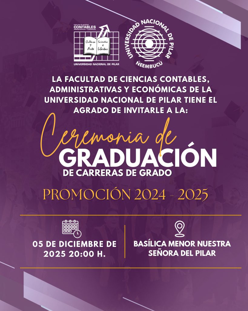 La Facultad de Ciencias Contables, Administrativas y Económicas de la UNP invita a la comunidad académica a la Ceremonia de Graduación — Promoción 2024-2025.