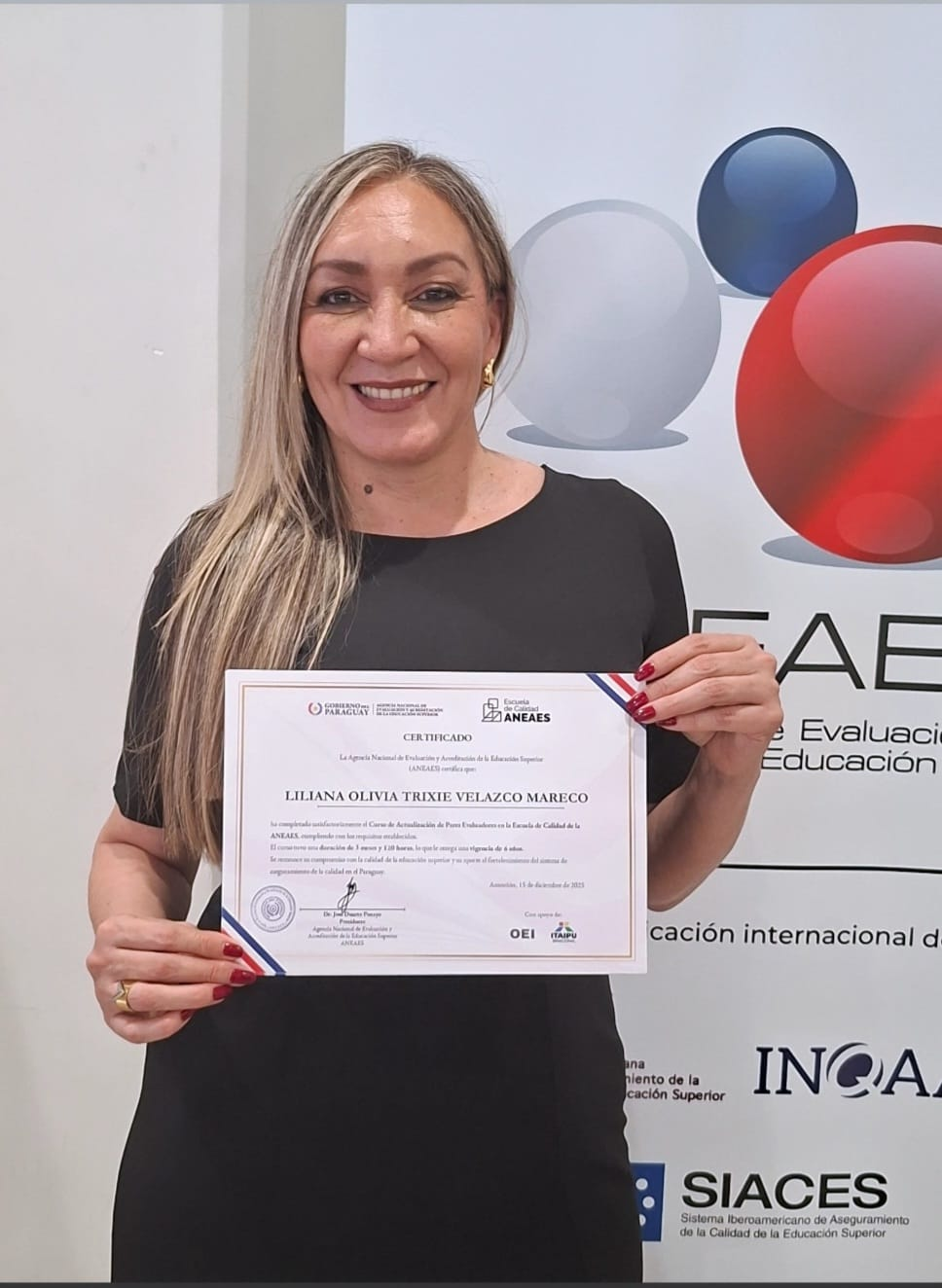l día 15 de diciembre de 2025, en la ciudad de Asunción, se realizó el acto de entrega de certificados del Curso de Formación y Actualización de Pares Evaluadores Externos, organizado por la Agencia Nacional de Evaluación y Acreditación de la Educación Superior (ANEAES).