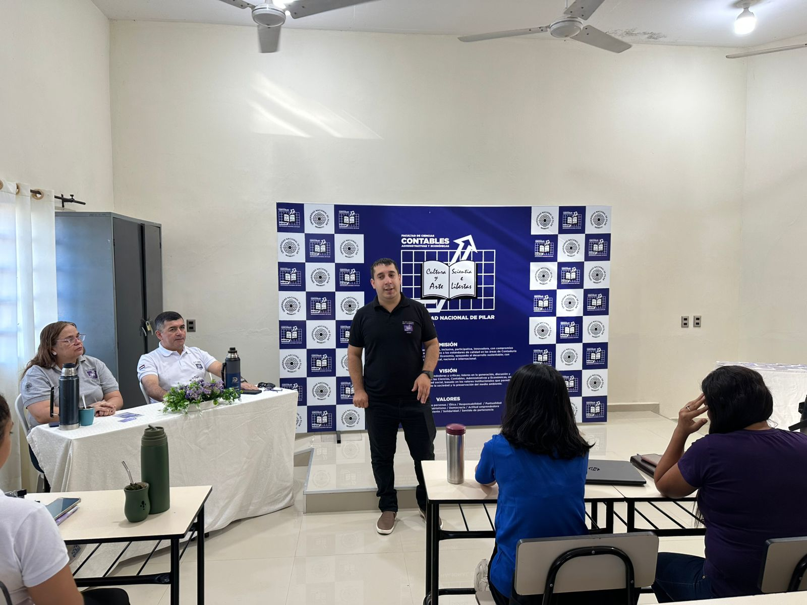 La Facultad de Ciencias Contables, Administrativas y Económicas, ya está en movimiento. El Dr. Diosnel Aguilera Rojas, Decano, la Dra. Petrona Elizabeth Fretes Ayala, Vicedecana, y el Mgtr, Rodolfo Villasboa, Jefe de Talento Humano, encabezaron una reunión con funcionarios para coordinar las actividades del nuevo período académico.